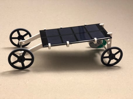 Ein SolarAuto-Bausatz ohne kleben und ohne großen Abfall. Fährt gerade aus und im Kreis! Die Konstruktion ermöglicht wenig Materialeinsatz und ist trotzdem stabil. hier bestellen